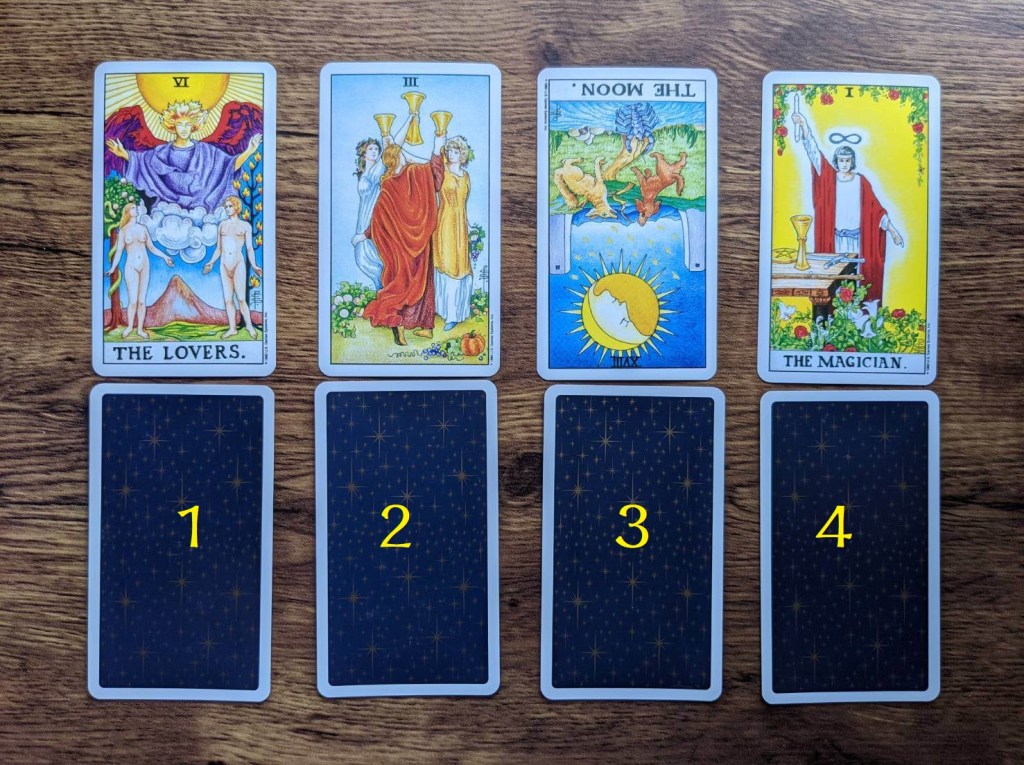 - 請看著上方四組牌,緩慢的深呼吸三次