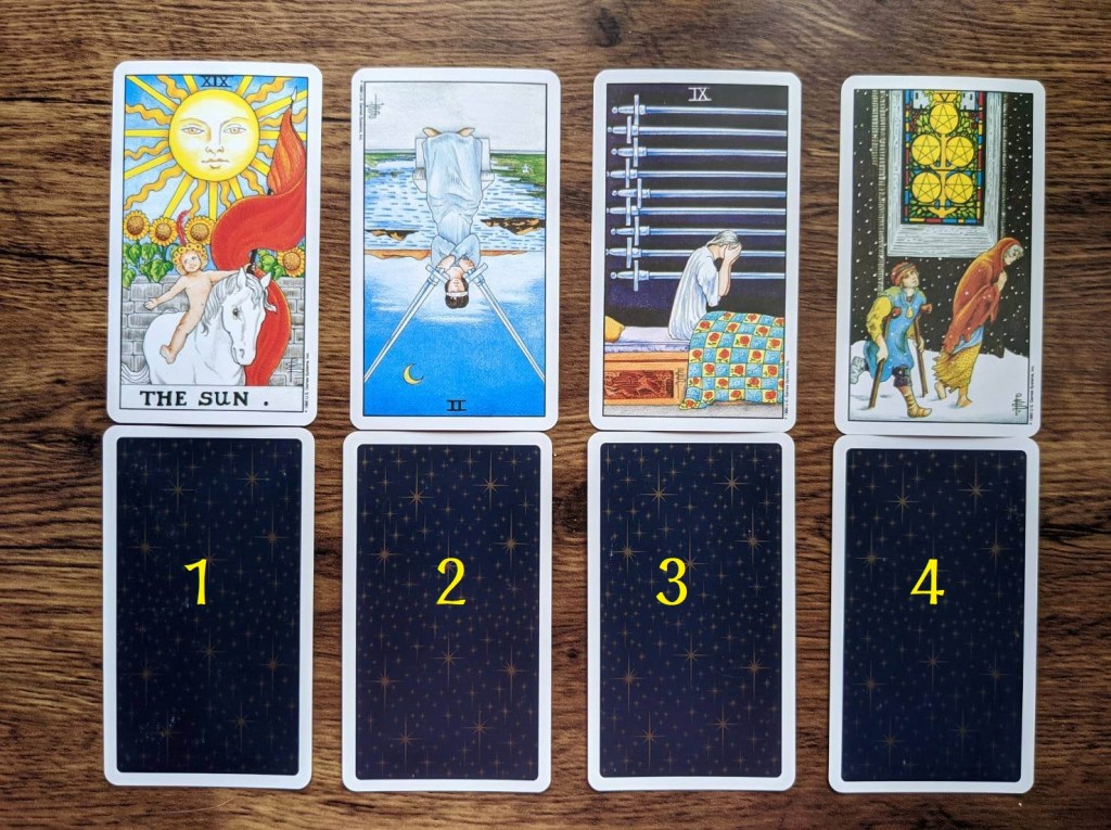 - 看著那四組塔羅牌,緩慢深呼吸三次