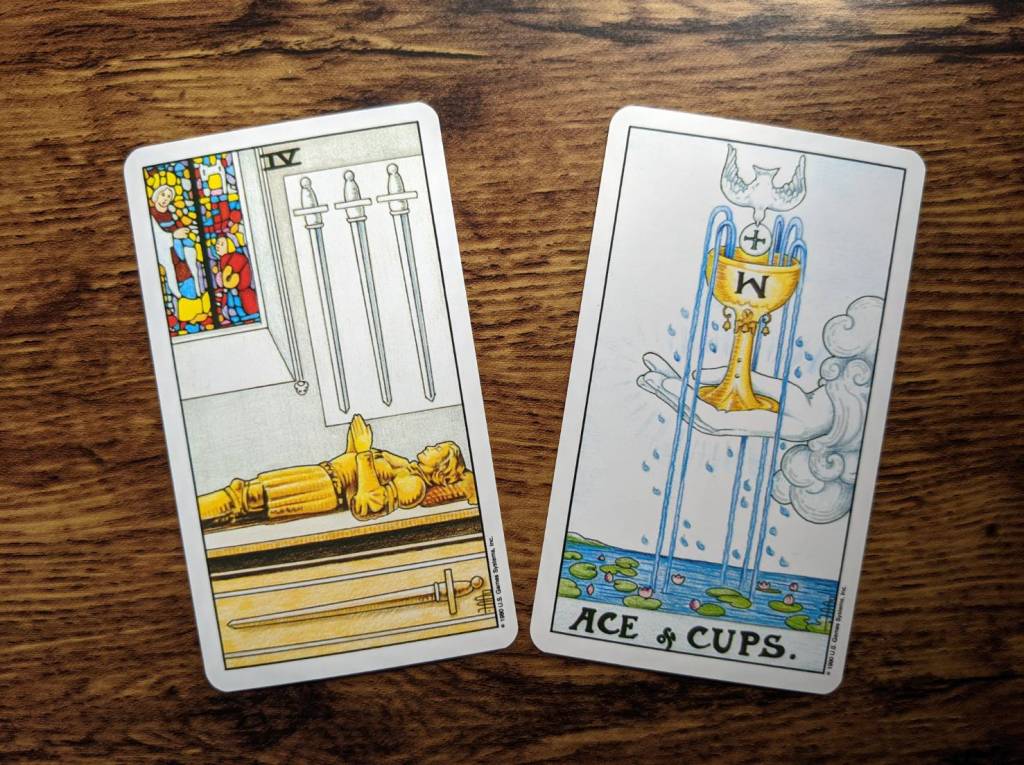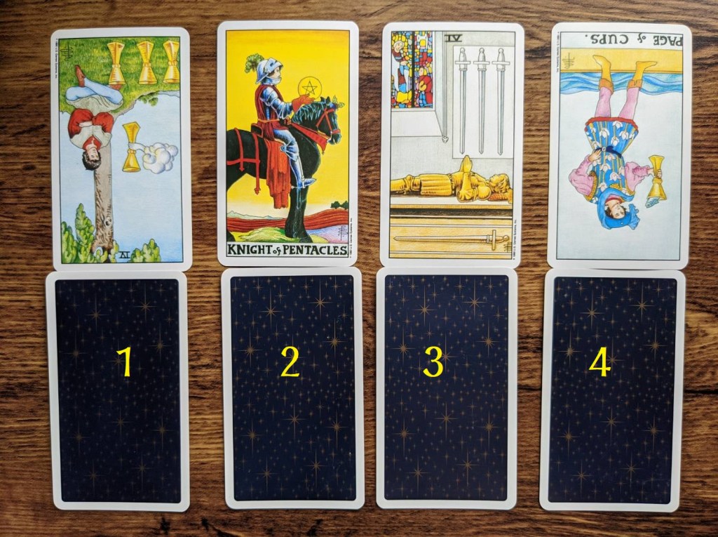 請看著上方圖片四組塔羅牌,緩慢深呼吸三次。
