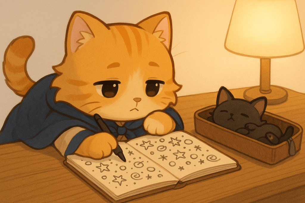 黑貓窩在筆盒裡打呼,
