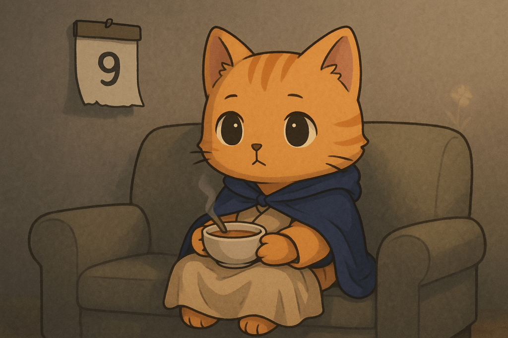 披著毛毯、抱著一碗熱湯,