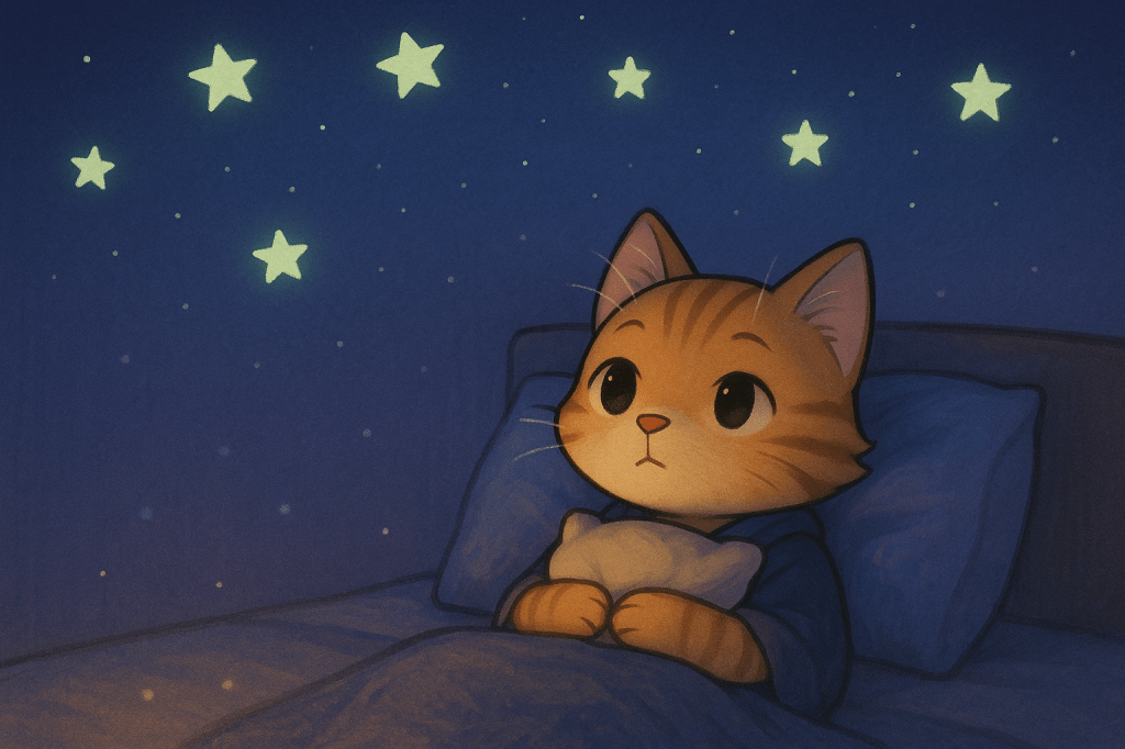燈關了,只剩下天花板上的星星貼紙,