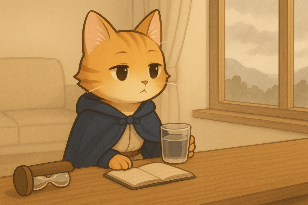 我靠在桌邊,手裡握著一杯水,