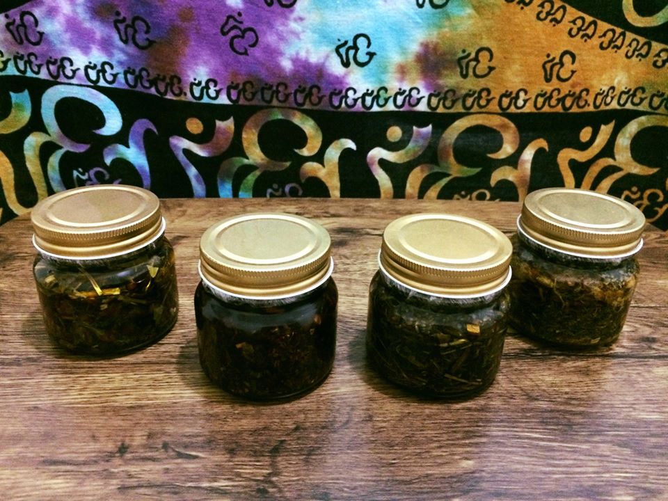草藥魔法油需釀製一整年的時間,選取數種相對應的草藥質性,使用冷壓初榨橄欖油釀製而成,純草藥、純橄欖油,不添加精油或是其他成分,經過 13個滿月的祝福與能量調整,孕育與提煉草藥的精華與力量,穩固而紮根的主題能量。